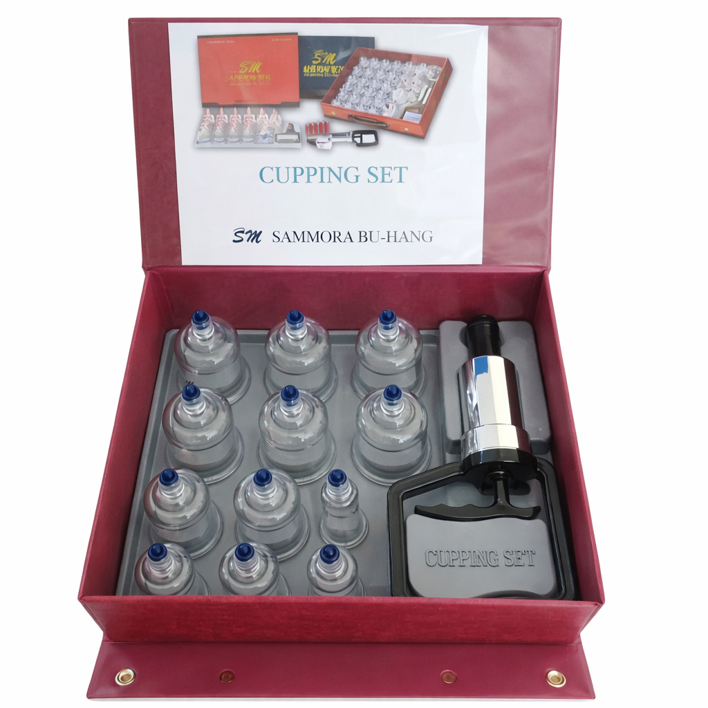Alat Bekam Sammora Bu‑Hang Premium Isi 12 Cupping Kit Made In Korea Original / Alat Bekam Sammora Premium 12kop / Samora Cupping Therapy 12 / Kop Angin/ Alat Bekam Sammora Premium Isi 12 Cup Terapi / Kop / Alat Bekam Sammora Korea Isi 12 Pcs adalah alat terapi bekam premium made in Korea dengan 12 cup (kop bekam) yang dirancang untuk pengobatan tradisional melalui teknik vakum tanpa api. Produk ini memberikan pengalaman bekam yang lebih efisien dan tahan lama dibandingkan set standa.